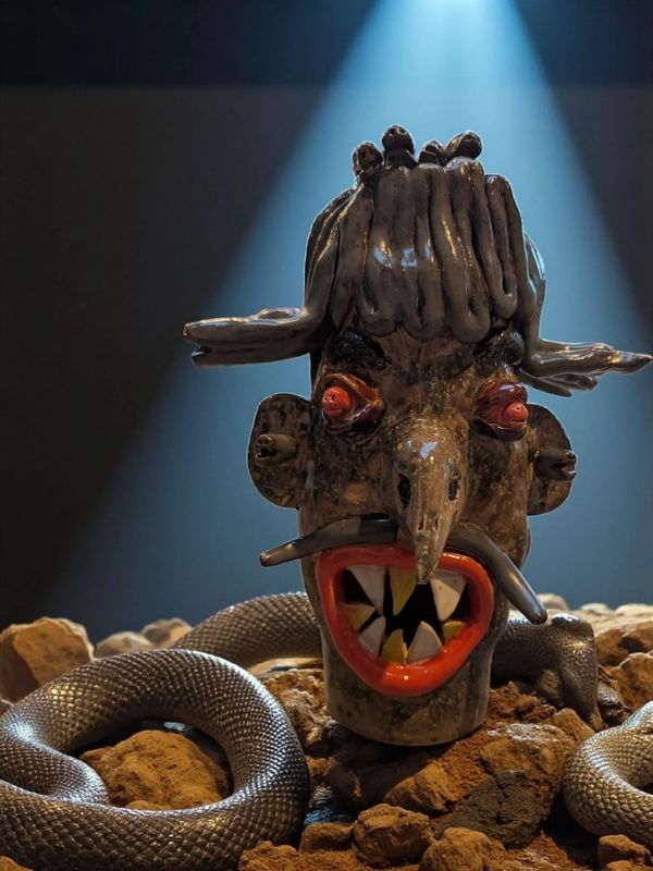 I hand build clay sculptures of weird animals and (weirder) people. Each sculpture is bisque fired to cone 08 (1728°F) and then glazed at cone 6 (2232°F) in an electric kiln.